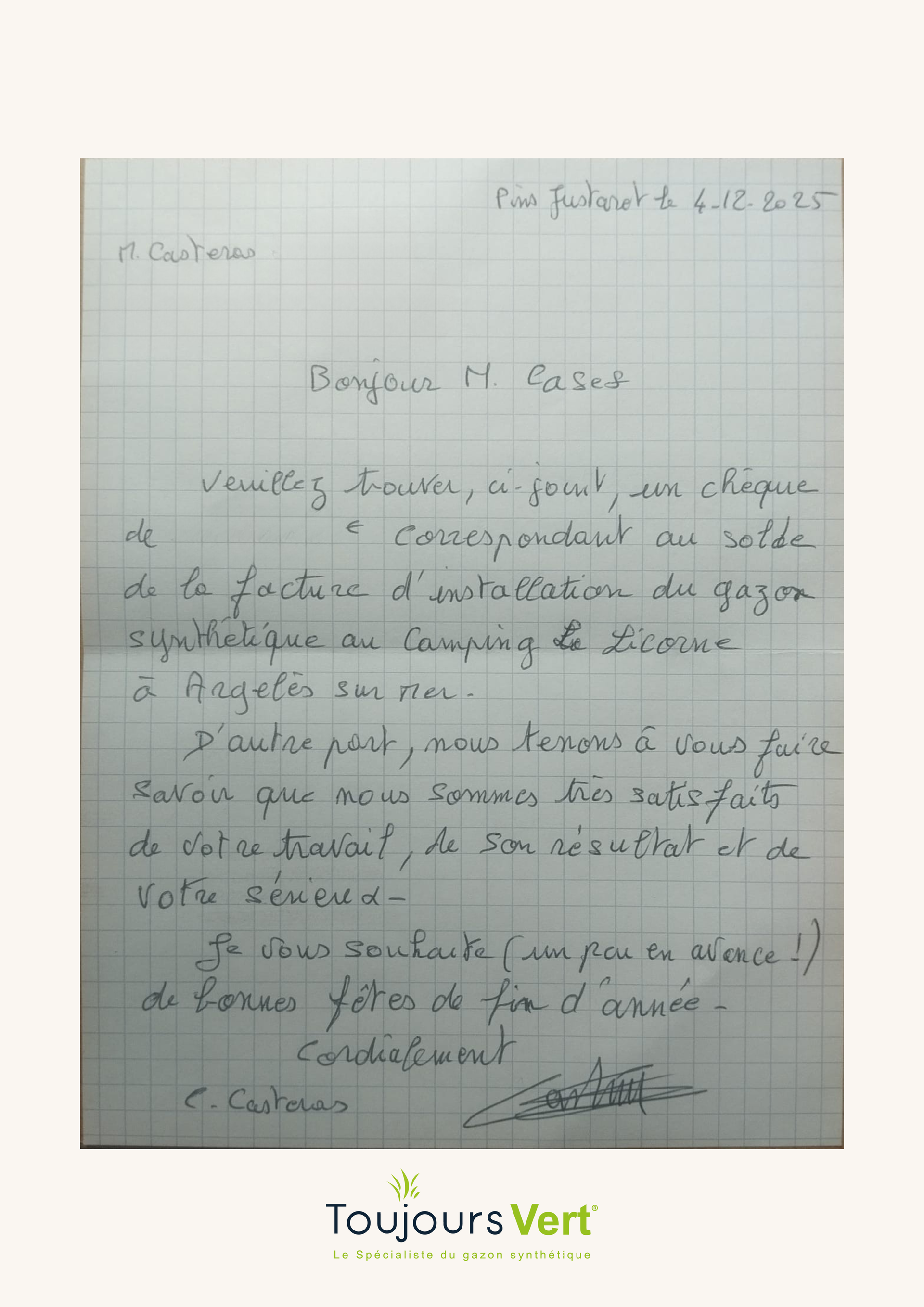Très satisfait de la pose de gazon synthétique par Toujours Vert 66. De bons conseils, excellente qualité de gazon, un travail sérieux et soigné en finitions. Délai de pose respectés. Une équipe de spécialiste très professionnelle, compétente et sympathique. Merci à Toujours Vert 66.